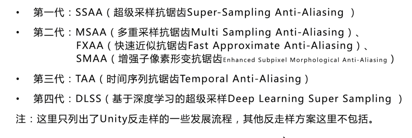 - 目前Unity的URP下,AA的方案主要还停留在第二代