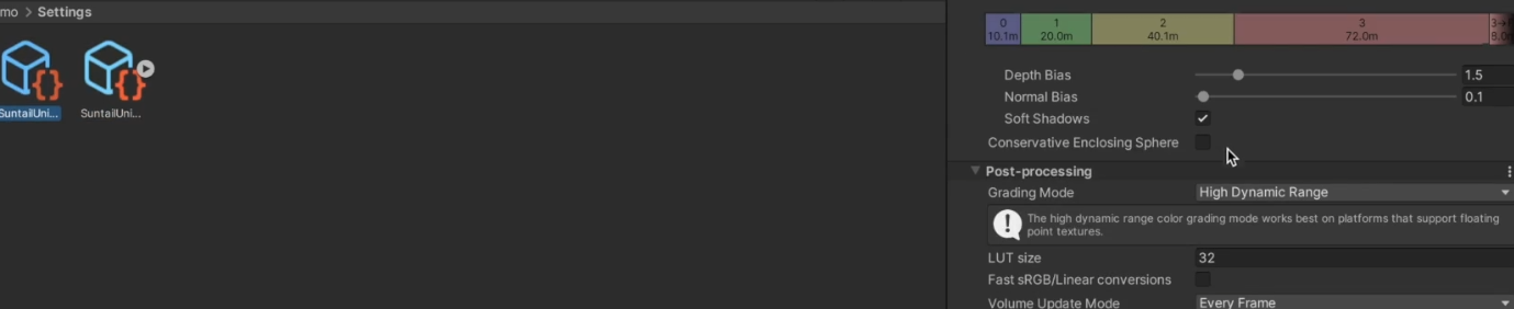 还有sRGB与线性空间转换(Fast sRGB/Linear conversions),使用速度较快但精度较低的近似函数选项。在优化时我们评估低端设备上画面损失与性能提升的性价比,可以参考勾选此选项。但要说明一点的是,如果支持浮点精度纹理的平台或设备,Color Grading的HDR模式效率会更高