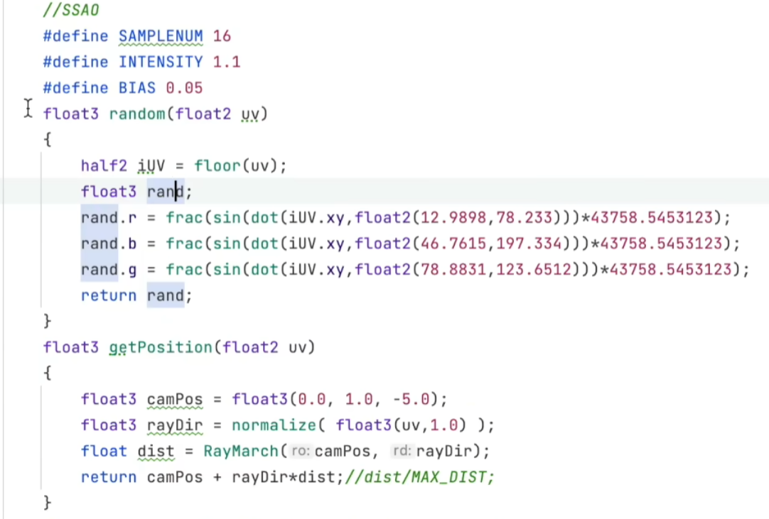 - 通过getPosition函数获得表面点屏幕对应uv,加上随机点投影到屏幕上的位移,来获取世界坐标系下随机采样点在世界深度外壳上的点